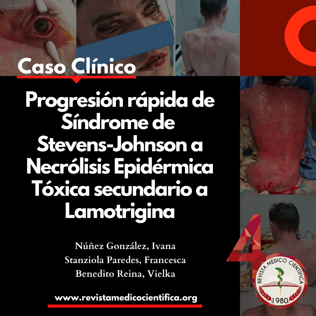 Paciente masculino de 19 años de edad procedente de la Provincia de Los Santos con antecedente personal patológico de hipoacusia en oído derecho y convulsiones de tipo generalizadas en estudio por lo cual estuvo en tratamiento durante tres semanas con Lamotrigina que acude con cuadro de aproximadamente siete días de evolución caracterizado por malestar general, astenia, adinamia, fiebre sin predominio horario, no graduada y conjuntivitis bilateral asociado a aparición gradual de eritema generalizado y máculas purpúricas predominantes inicialmente en área facial, cuello, tronco y extremidades superiores a nivel proximal además de prurito generalizado y sensibilidad cutánea. Durante la hospitalización cursa con diseminación de las lesiones al resto de la superficie corporal junto con aparición de ampollas de contenido claro, áreas de desprendimiento epidérmico y afectación de mucosas; abarcando menos del 10% de superficie corporal total inicialmente y luego progresando rápidamente a más del 80% de superficie corporal en menos de 24 horas. Fue trasladado a Unidad de Cuidados Intensivos y cursó con evolución favorable.