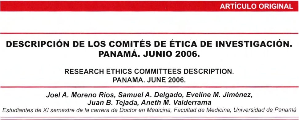Descripción de los Comités de ética de Investigación. Panamá. Junio 2006.