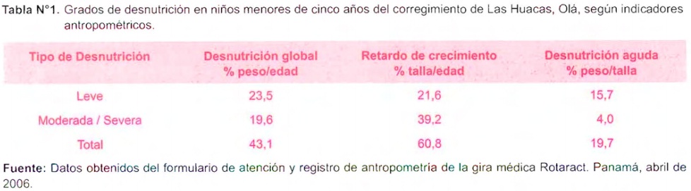 Evaluación Nutricional en Niños Menores de Cinco Años del Corregimiento de Las Huacas, Olá. Panamá. Abril 2006.