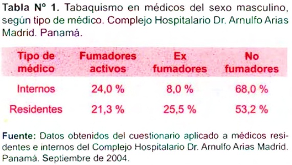 Tabaquismo en Médicos Residentes e Internos del Complejo Hospitalario Metropolitano Dr. Arnulfo Arias Madrid. Panamá.